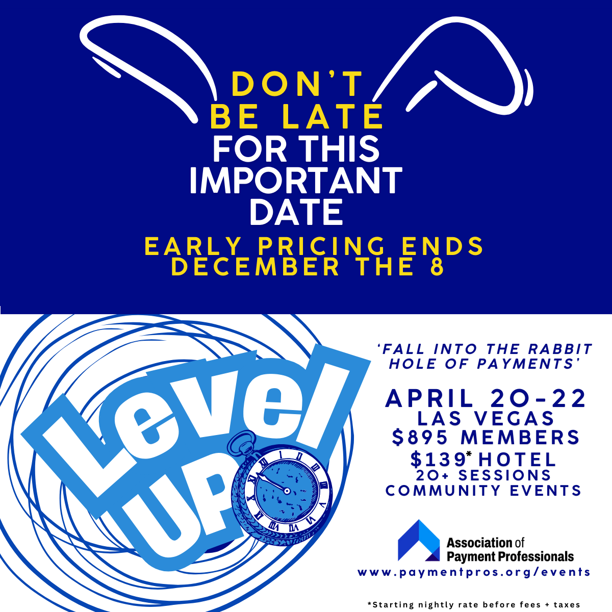At APP’s annual Level Up conference, we invite you to follow us down the rabbit hole—into a world where curiosity meets clarity, and unexpected connections spark real solutions. Level Up isn't just a conference—it's a portal to discovery, learning, and collaboration in the ever-evolving payments ecosystem.